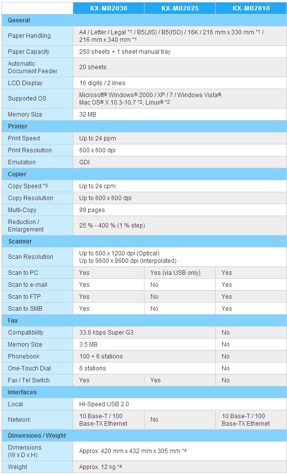 *2 Printer Drivers for Mac OS and Linux are provided via web download. Please visit for more information.